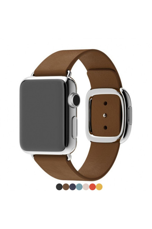 Ally Apple Watch 7-8 41mm 6-5-4 40mm Deri Kordon Kayış Modern Toka 3-2-1 38mm KAHVERENGİ.