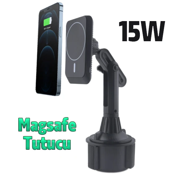 ALLY Bardaklık Uyumlu Telefon Tutucu Magsafe iPhone 12 Serisi 15W Kablosuz Hızlı Şarj Cihazı