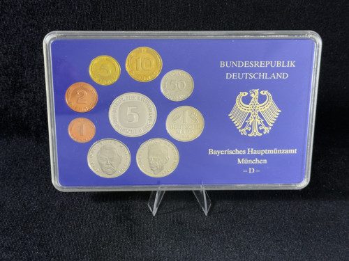 Set içerisinde; Pfennig serisinin farklı nominal değerleri ile birlikte Deutsche Mark birimlerinin tamamı yer almakta, Alman Federal Kartalı ve meşe dalı motifleri dönemin karakteristik tasarım anlayışını yansıtmaktadır. Sikkeler, dolaşıma girmemiş koleksiyon kondisyonunda sunulmuş olup yüzey detayları ve darphane izleri net şekilde seçilebilmektedir.