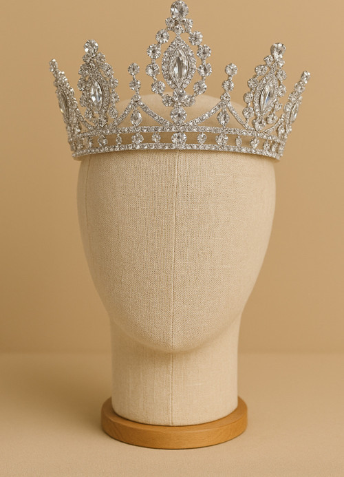 Almanara Project Elmas Görünümlü Parlak Kristal İşlemeli Gümüş Kaplamalı Gelin Tacı – Işıltılı Prenses Taç Modeli