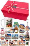 Lüks Fiyonklu bir Hediye Kutusu ile birlikte 8 Adet Ülke Magneti Şişe Kapak Açacak, 1 Adet Anahtarlık Şişe Kapak Açacak ve 1 adet Kupa Bardaktan oluşan toplam 10 adet seyahat hatıra paketi. Dolu dolu Hediyenizi Lüks Hediye Kutusunda Sevdiklerinize sunabilirsiniz.