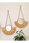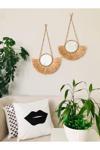 İki adet sarkıt rafya ayna, mekanınıza modern ve şık bir görünüm katar.