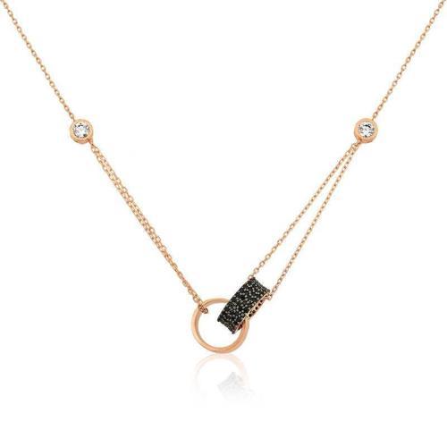 Gümüş Rose İç İçe Geçmiş Halka Kolye