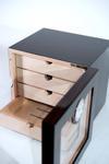 Dört adet geniş çekmecesi, farklı puro çeşitlerini kategorilere ayırarak düzenli ve pratik bir kullanım sağlar.