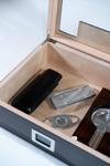 AlsepeteAvm Setli Humidor, zarif tasarımı ve sağlam yapısıyla puro koleksiyonunuza şıklık ve koruma sunar. Hem estetik hem fonksiyonel detaylarıyla öne çıkar.