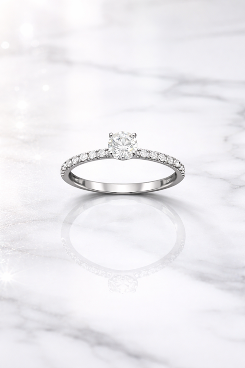 Merkezde yer alan yuvarlak kesim pırlanta, ışığı kusursuz şekilde yansıtarak göz alıcı bir parlaklık sunar. İnce ve zarif yüzük formu sayesinde hem günlük kullanıma hem de özel anlara mükemmel uyum sağlar. Evlilik teklifi, nişan veya unutulmaz bir hediye için ideal bir seçimdir.