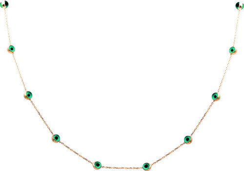 14 Ayar altın zarif tasarımıyla günlük kullanıma uygun ışıl ışıl nazar boncuklu kolye.