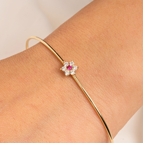 Yakut Taşlı Çiçek Tasarım Zarif 14 Ayar Altın Bilezik