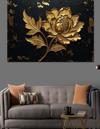 Altın Çiçek Kabartması Dekoratif Kanvas - Mdf Ahşap Tablo