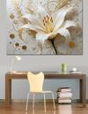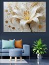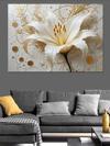 Altın Detaylı Zarif Zambak Dekoratif Kanvas - Mdf Ahşap Tablo