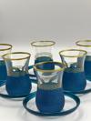 Altın Geometrik Desenli 6 Kişilik Çay Bardağı Seti Mavi