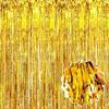 Altın Gold renk ekstra metalize parlak saçaklı arka fon perdesi ile özel günlerinize ve kutlamalarınıza göz kamaştırıcı bir ışıltı katın! İthal malzemeden üretilen bu perde, 1x2 metre boyutuyla her türlü dekorasyona uyum sağlar.