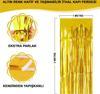 Altın Gold renk ekstra metalize parlak saçaklı arka fon perdesi ile özel günlerinize ve kutlamalarınıza göz kamaştırıcı bir ışıltı katın! İthal A kalite malzemeden üretilen bu perde, 1x2 metre boyutuyla her türlü dekorasyona uyum sağlar.