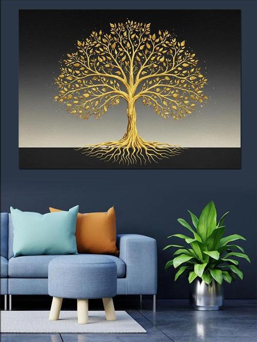 Tablomega Altın Hayat Ağacı Dekoratif Kanvas - Mdf Ahşap Tablo