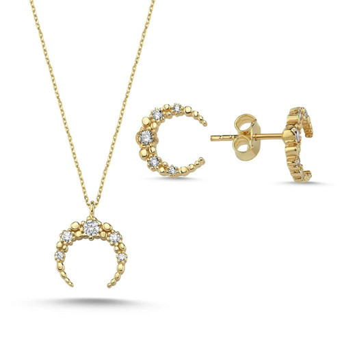 Doğum günü, evlilik yıldönümü, sevgililer günü, anneler günü, kutlama, yeni yıl, mezuniyet, dini ve romantik günler için mükemmel bir hediye seçeneği olarak titizlikle tasarlanmış günlük kullanım içinde her kıyafetle rahatlıkla kombin yapılabilir ışıltısıyla sizi bulunduğunuz ortamda öne çıkaracak hilal kolye ve küpe setinin asla modası geçmez ve her defasında sizi tekrar etkisi altına alır.
