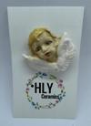 - Klasik sanat eserlerinden ilham alınarak tasarlanan bu el yapımı melek broş, yumuşak yüz hatları ve altın tonlu saçlarıyla dikkat çeker.