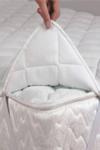 Üst yüzey : pamuklu 57 tel ranforse kumaş Orta Kısmı Iç dolgu : 120 gr/m2 1.Kalite elyaf dolgu Alt yüzey :30gr/m2 Tülbend Tela Kaplamadır Pamuklu özelliği sayesinde sıcak havalarda serin tutar. Kışın soğuk havalarda ısınmanızı sağlar. Cildi tahriş etmez, rahat bir konfor sunar.