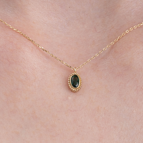 Fasek Gold Altın Kolye - 0.50 CT Zümrüt Minimal Tasarım 14 Ayar Altın Doğal Taşlı Kolye - Zümrüt Taşlı Kolye