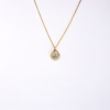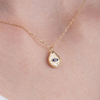 Fasek Gold Altın Kolye - Damla Mekik Gözlü Çift Renk Mineli 14 Ayar Altın Kolye - İki Farklı Renkte Altın Kolye