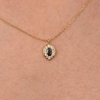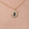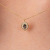Fasek Gold Altın Kolye - Oval Mistik Topaz Taşlı Yanları Zirkon Taşlı Modern Tasarım 14 Ayar Altın Kolye