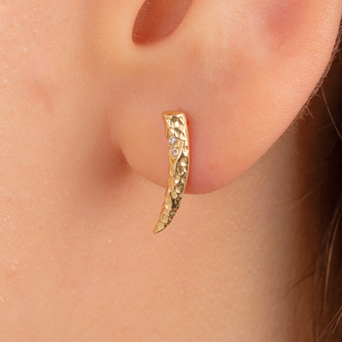 Fasek Gold 14 Ayar Altın Minimal Taşlı Dövülü Küpe