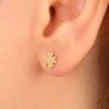 Fasek Gold 14 Ayar Altın Minimal Yonca Yaprağı Küpe