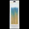Deniz Parti Altın Mavi Geçişli Metalik İnce Uzun Pasta Mum 16 cm * 6 Adet