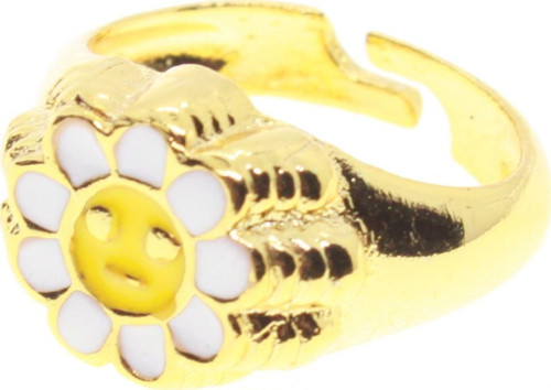 X-lady Accessories Altın Renk Beyaz Sarı Mineli Papatya Gülen Surat Yüzük Ayarlabilir Her Parmağa Olur - 1492