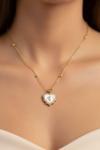 X-lady Accessories Altın Renk Beyaz Sedef Kalp Model Top Zincir Çelik Kolye - 3686