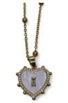Altın Renk Beyaz Sedef Kalp Model Top Zincir Çelik Kolye - 3686
