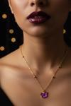 X-lady Accessories Altın Renk Fuşe Taş Kelebek Model Top Zincir Çelik Kolye - 3752