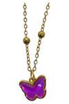 Altın Renk Fuşe Taş Kelebek Model Top Zincir Çelik Kolye - 3752