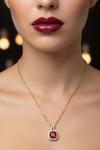 X-lady Accessories Altın Renk Kare Bordo Taş Sf Zincir Çelik Kolye - 3742