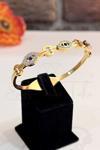 - Gençlerin enerjisini ve stilini yansıtan tasarımıyla dikkat çeken bu bileklik, altın renk nazar boncuk ve göz figürleriyle süslenmiştir; - Göz alıcı zirkon taş işlemeleri, bilekliğe modern ve şık bir görünüm kazandırırken, çelik materyali sayesinde uzun süreli kullanım için dayanıklılık sunar; - Hem günlük kullanım hem de özel günlerde tercih edilebilecek bu bileklik, gençlerin tarzını tamamlayacak zarif bir aksesuardır;