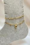 X-lady Accessories Altın Renk Nazar Göz Kalp Model Singapur Ve Top Zincir Çelik Halhal - 3298