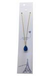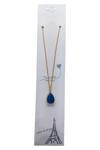 Altın Renk Sıra Taşlı Lacivert Damla Model  Sf  Zincir Çelik Kolye - 3748