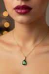 X-lady Accessories Altın Renk Sıra Taşlı Yeşil Damla Model Sf Zincir Çelik Kolye - 3744