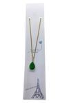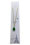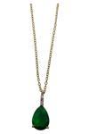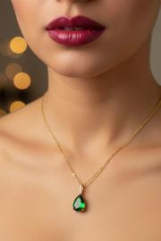 Altın Renk Sıra Taşlı Yeşil Damla Model  Sf  Zincir Çelik Kolye - 3744