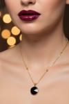 X-lady Accessories Altın Renk Siyah Taş Yuvarlak Model Top Zincir Çelik Kolye - 3757