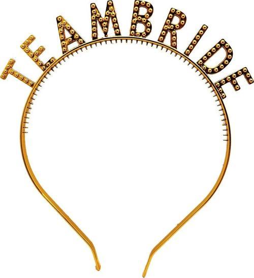 Bekarlığa veda partinizi unutulmaz kılmak için Team Bride Taç ile şıklığınızı tamamlayın! Altın renkli ve taş detaylı tasarımı sayesinde gelin ve nedimeler için mükemmel bir aksesuar.