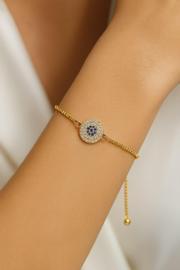 Turtcest 925 Ayar Gümüş Gold Yuvarlak Taşlı Kadın Bileklik