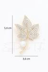 Altın rengi kaplama ile zenginleştirilmiş metal malzeme, şıklığınızı tamamlayacak zarif bir görünüm sunar; Zirkon taş detayları, broşunuzu ışıltılı ve göz alıcı bir aksesuar haline getirir; İnci işlemeli yaprak tasarımı, klasik ve zamansız bir estetik anlayışını yansıtır; Metal malzeme kullanımı sayesinde dayanıklılık ve uzun ömürlü kullanım vaat eder;