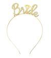 Bu zarif Altın Renkli Taşlı &ldquoBride&rdquo Gelin Tacı, özel gününüzde ışıltınızla parlamanızı sağlayacak mükemmel bir aksesuar El yazısı stilinde tasarlanmış &ldquoBride&rdquo yazısı, altın rengin asaletini taş detaylarının ışıltısıyla buluşturuyor. Bekarlığa veda partilerinde, kına gecelerinde veya düğün sabahı hazırlıklarında kullanmak için ideal olan bu taç, saçınıza kolayca oturur ve rahat bir kullanım sunar. Şıklığı ve zarafeti bir araya getiren bu taç, tüm gözleri üzerinize çekmek için tasarlandı.