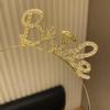 Bu zarif Altın Renkli Taşlı “Bride” Gelin Tacı, özel gününüzde ışıltınızla parlamanızı sağlayacak mükemmel bir aksesuar! El yazısı stilinde tasarlanmış “Bride” yazısı, altın rengin asaletini taş detaylarının ışıltısıyla buluşturuyor. Bekarlığa veda partilerinde, kına gecelerinde veya düğün sabahı hazırlıklarında kullanmak için ideal olan bu taç, saçınıza kolayca oturur ve rahat bir kullanım sunar. Şıklığı ve zarafeti bir araya getiren bu taç, tüm gözleri üzerinize çekmek için tasarlandı.