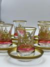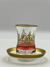 Mevlana Bazaar'ın zarif tasarımıyla öne çıkan bu çay bardağı seti, altın taç desenleriyle şıklığı ve zarafeti bir araya getiriyor.