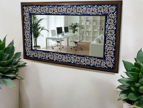 - El yapımı çini deseniyle süslenmiş, her bir detayda işçiliğin izlerini taşıyan duvar aynası, mekanınıza otantik bir hava katıyor.; - 80 x 100 cm boyutlarındaki dikdörtgen formu ile modern ve klasik dekorasyon stillerine uyum sağlayarak geniş bir kullanım alanı sunuyor.; - Türkiye'de üretilmiş olması, yerel zanaatkarların emeğini ve kaliteli malzemeleri yansıtarak gurur verici bir menşei sağlıyor.; - Ahşap çerçevesi ile dayanıklılığı ve estetiği bir arada sunan bu ayna, uzun ömürlü kullanım vaat ediyor.;
