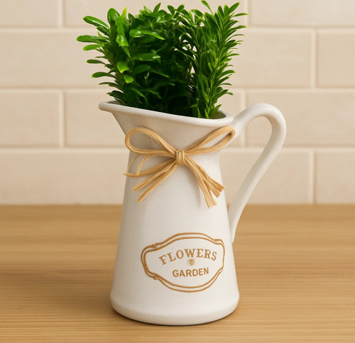 Modern ve zarif tasarımıyla dikkat çeken bu beyaz plastik saksı, ev ve ofis dekorasyonunuza şıklık katar. Üzerinde “Flowers & Garden” yazısı bulunan bu özel tasarım saksı, doğal hasır kurdele detayı ile rustik ve sıcak bir hava yaratır.
