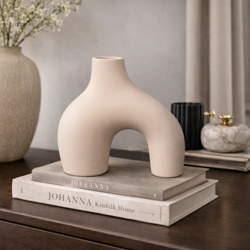Yaşam alanlarınıza sade ama dikkat çekici bir estetik katmak istiyorsanız, bu modern arch (kemer) formlu bej seramik vazo tam aradığınız dekoratif obje olabilir. Organik hatlara sahip bu özel tasarım, heykelsi formuyla hem minimalist hem de çağdaş dekorasyon stilleriyle kusursuz uyum sağlar.