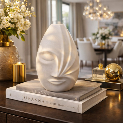 El yapımı detay hissi veren modern soyut yüz hatları, yaşam alanınıza sanatsal bir ruh katar. Minimalist dekorasyon tarzlarıyla uyum içinde olan bu ürün; lüks objeler, kitap dekorları, gold aksesuarlar ve nötr tonlardaki ortamlarla mükemmel bir bütünlük sağlar.