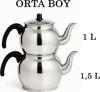 - Alt çaydanlık yükseklik:12 cm & Hacim:1,5 L